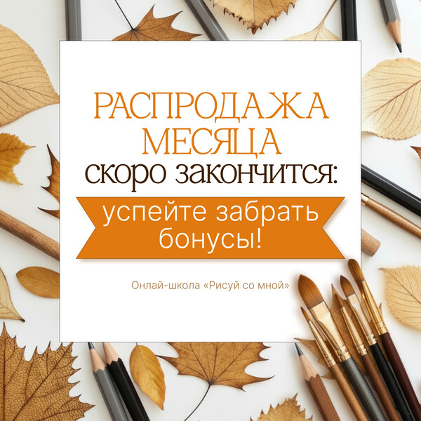 Октябрь подходит к концу, а значит РАСПРОДАЖА сильнейших курсов от «Рисуй со мной» — тоже... Успейте воспользоваться своими преимуществами ПРЯМО СЕЙЧАС👇