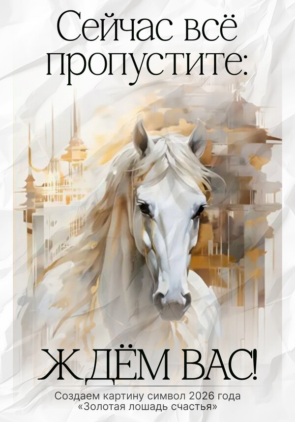 📆3 октября в 19:00 Мск — создаем картину символ 2026 года «Золотая лошадь счастья»
