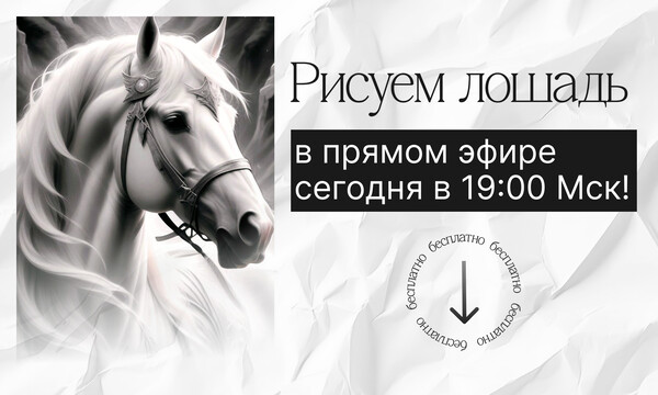 📯Сегодня, 23 октября в 19:00 Мск — напишем лошадь в технике «графика»