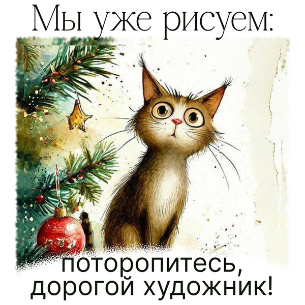 📆12 декабря в 19:00 Мск — мастер-класс по новогодней открытке с котом «Нежданчик»