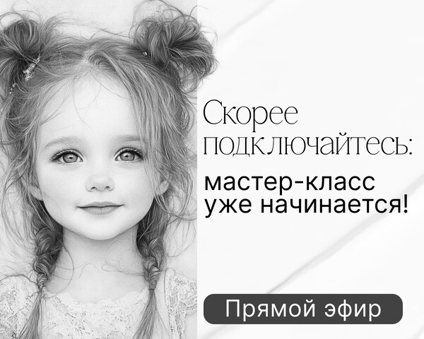 🔊Сегодня, 4 декабря в 19:00 Мск — через 15 минут рисуем девочку карандашом и знакомимся с техникой «сухая кисть»