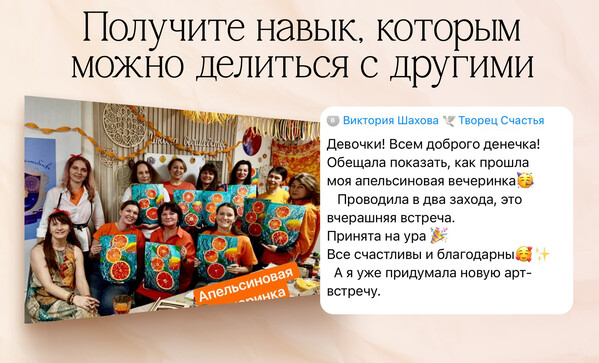 Все, кто посещают даже бесплатные мастер-классы, могут организовывать творческие вечера для друзей, родных, коллег⭐🔥