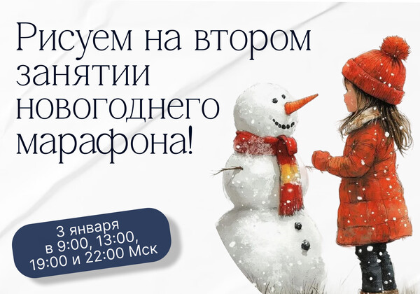 Сегодня, 3 января в 9:00, 13:00, 19:00 и 22:00 Мск, второй урок марафона — строим фигуру человека в новогодней открытке😍
