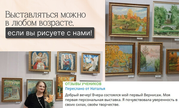 Ученица Наталья впервые выставлялась и ощутила уверенность в своих силах💪Наши студенты впервые выставляются в 40, 50, 60 и даже в 70-80 лет👏