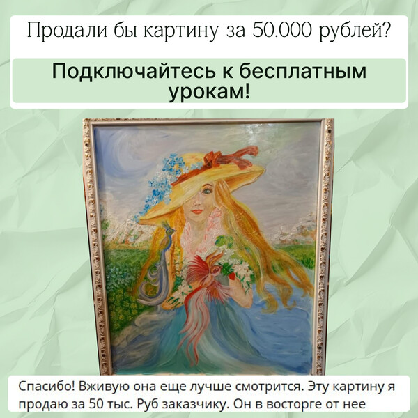 Когда напишете картину, у вас появится возможность подарить или выставить её на продажу. Даже на бесплатных программах Наталья Коневец учит писать ДОРОГИЕ холсты💰