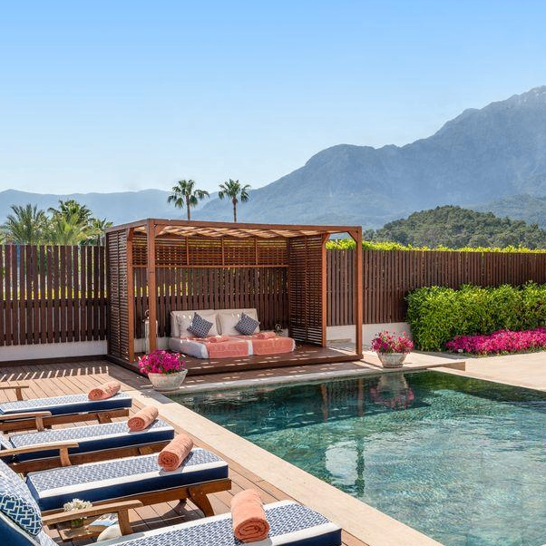 | | |  Белек | Отель, где все продумано: в номерах — меню подушек и косметика Etro, в аквапарке — горки с подогревом, а шезлонги — на деревянных платформах. И еще есть 270-метровый пляж — один из лучших в Белеке. | | |