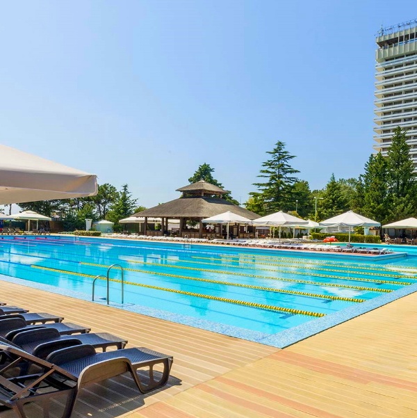 | | | Бассейн с подогревом, свой пляж и аттракционы «Сочи Парка» по соседству — далеко не все фишки отеля. Еще есть три ресторана, два детских клуба и спа-комплекс с кедровыми бочками на аромамаслах. | | |