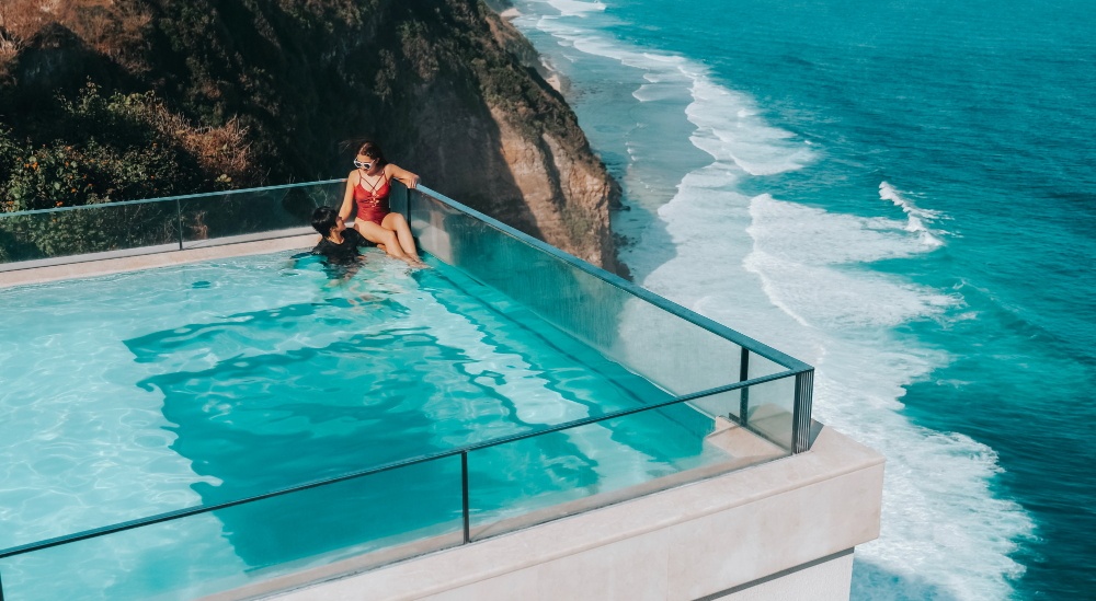 Улувату | Бассейн со стеклянным дном на высоте 160 метров над океаном — уже ради одного этого вида сюда стоит приехать. Еще здесь есть лаунж-зона на крыше, приватные виллы и ресторан с изысканной кухней — все это входит в дневной абонемент. Отличный повод устроить себе день роскоши. | | |