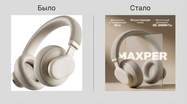вы присылаете фото товара с телефона → мы создаём студийную фотосессию и видео через нейросети → вы загружаете готовые файлы в карточку.